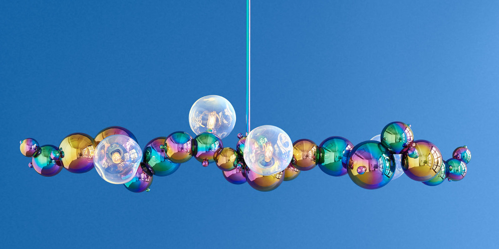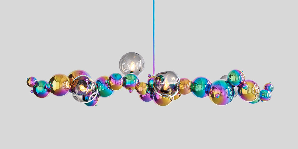 A playful capsule collection of Bubbly designs in colorful spectra. Each piece is coated in ever-shifting rainbow hues through a special physical vapor deposition process. Due to the organic nature of the PVD finishing process, colors are slightly unique and vary between fixtures.