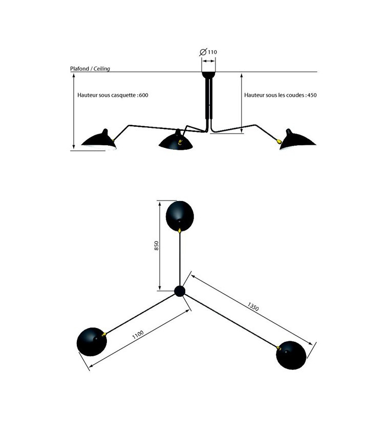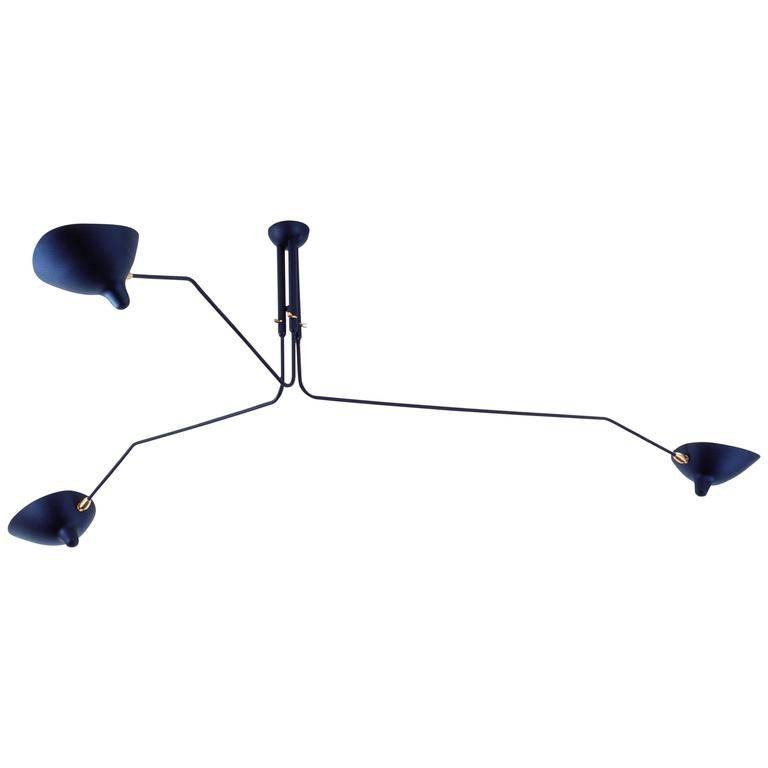 Simple and elegant, this ceiling lamp makes a dramatic addition to a veriety of room settings. With 3 rotating arms of differing lengths and heads that revolve and tilt, this lamp is capable of projecting upwards, downwards and sideways