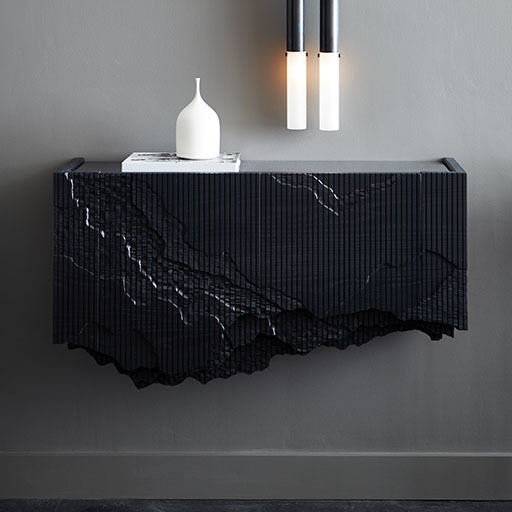 Simon Johns is a fine arts–trained designer living and working in the secluded woods of East-Bolton in southern Quebec, Canada. Illustrating a conversation between the fabricated and the elemental, Simon creates one-off and limited-edition pieces of sculptural furniture and lighting. His work is a product of observing and living with the pure and raw shapes of his surroundings. The unaltered physical traits of primary materials are harnessed to evoke the emotions one feels in their presence. Using a variety of materials as vocabulary, he plays with their capabilities in mimicry, having them reference or reflect each other in precisely crafted poetic compositions. The outcome is work that is imbued with a sense of contemplation, as if we are to evaluate our connection to our own environment.