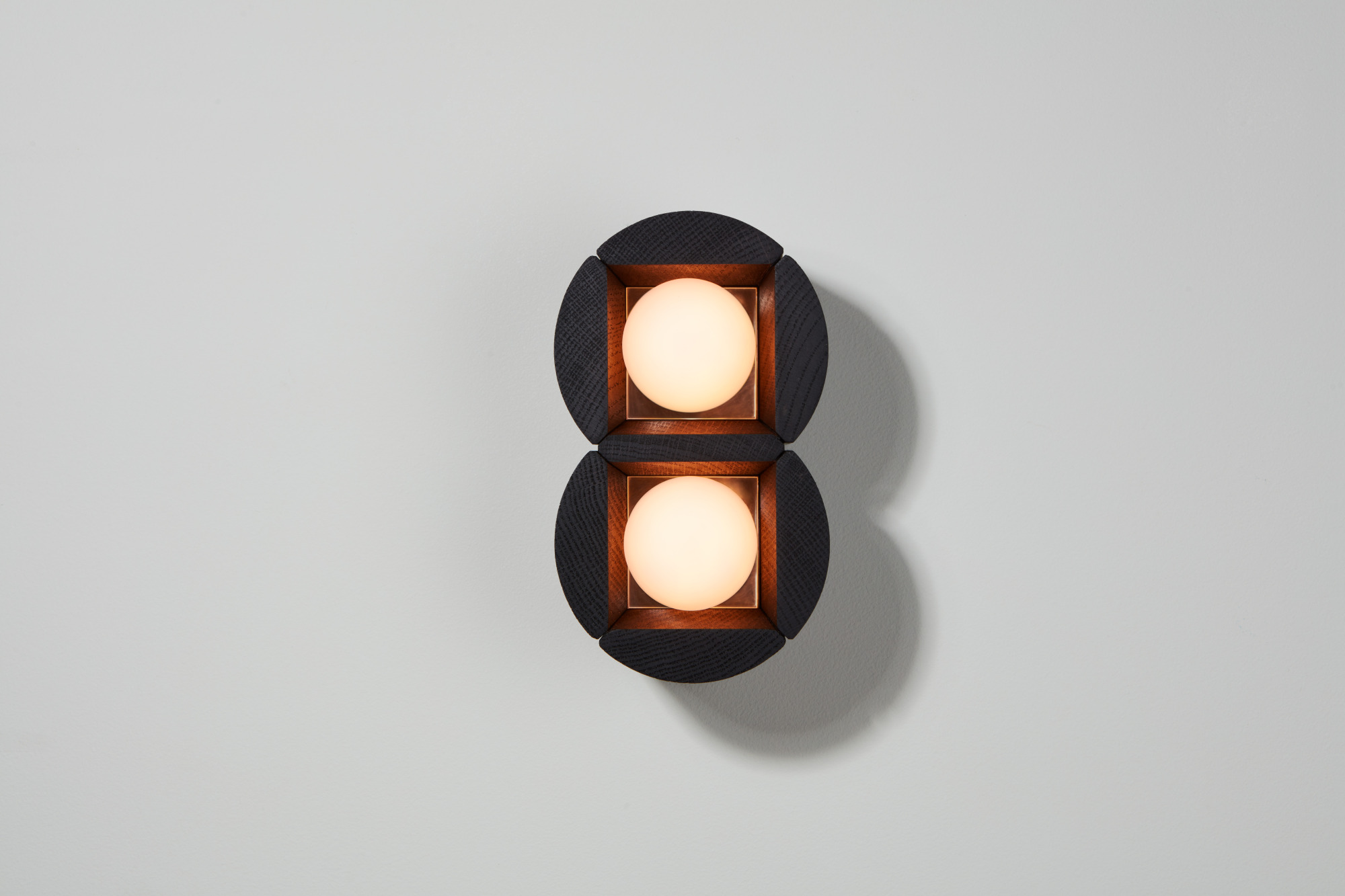 Inspired by a pile of long linear wooden cut-offs in their workshop, RUX designers challenged themselves to develop a truly sustainable lighting system. As a starting point, they only considered designs that could be manufactured locally and affordably within a five mile radius of their New York City office. They chose to use reclaimed and sustainably sourced woods as a primary building material, and sourced energy efficient LED technologies and components. The collection was designed with the least number of parts possible and with connections that make the pieces easy to separate for maintenance, recycling, or reuse.