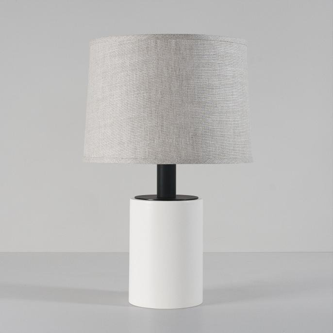 Handcrafted stoneware lamp body available in Fossil Gray, Pigeon, White Quartz, Charcoal, Obsidian and in our hand-carved Canyon finish. The Fairfax table lamp is available with hand finished blackened brass or satin brass hardware. Lampshades are 100% natural linen in cream or natural.