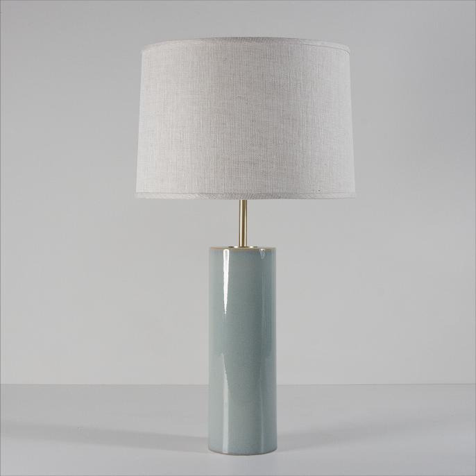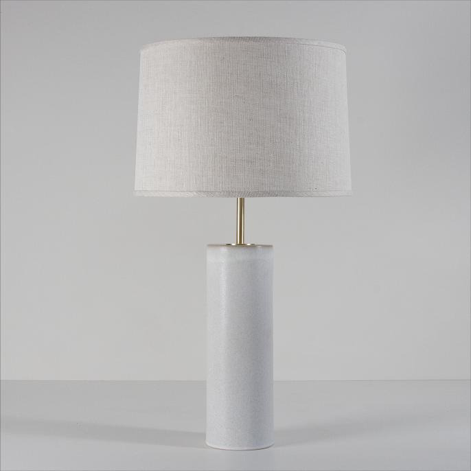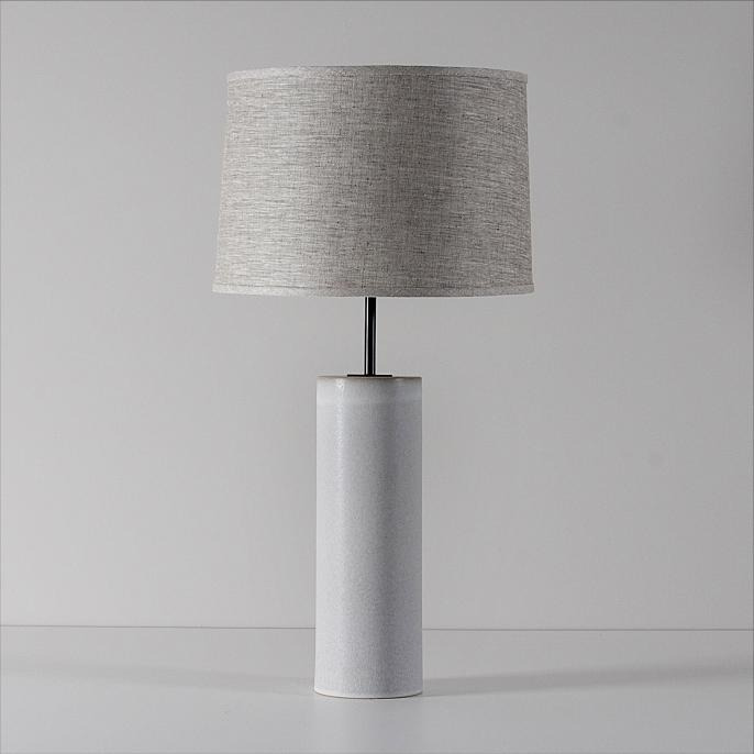 Handcrafted stoneware lamp body available in Fossil Gray, Pigeon, White Quartz, Charcoal, Obsidian and in our hand-carved Canyon finish. The Hancock table lamp is available with hand finished blackened brass or satin brass hardware. Lampshades are 100% natural linen in cream or natural.