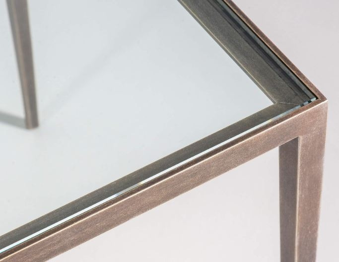 Materials: Base: Steel, Top: Glass, Antiqued Glass or Marble
