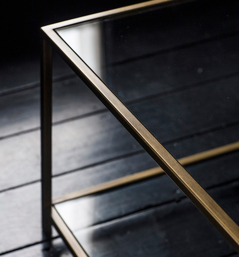 Materials: Base: Steel or Hand Polished Steel Top: Glass including antiqued mirror