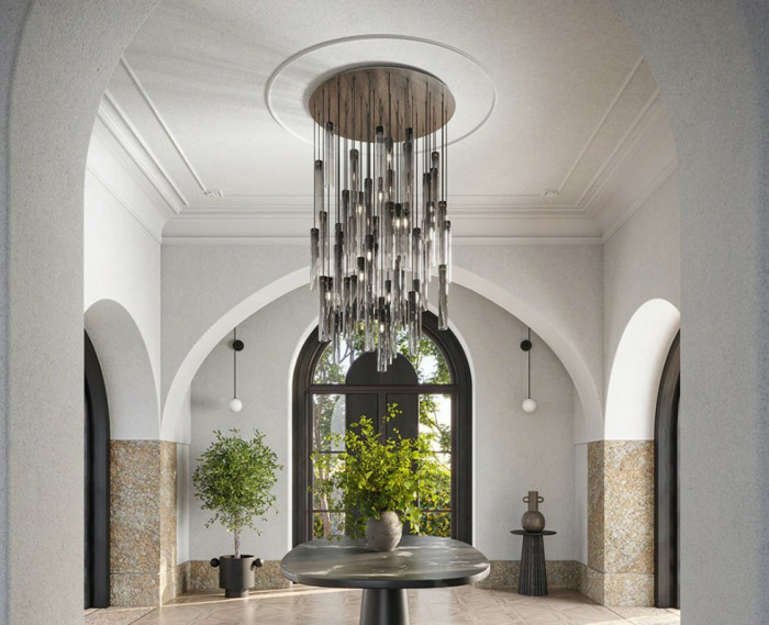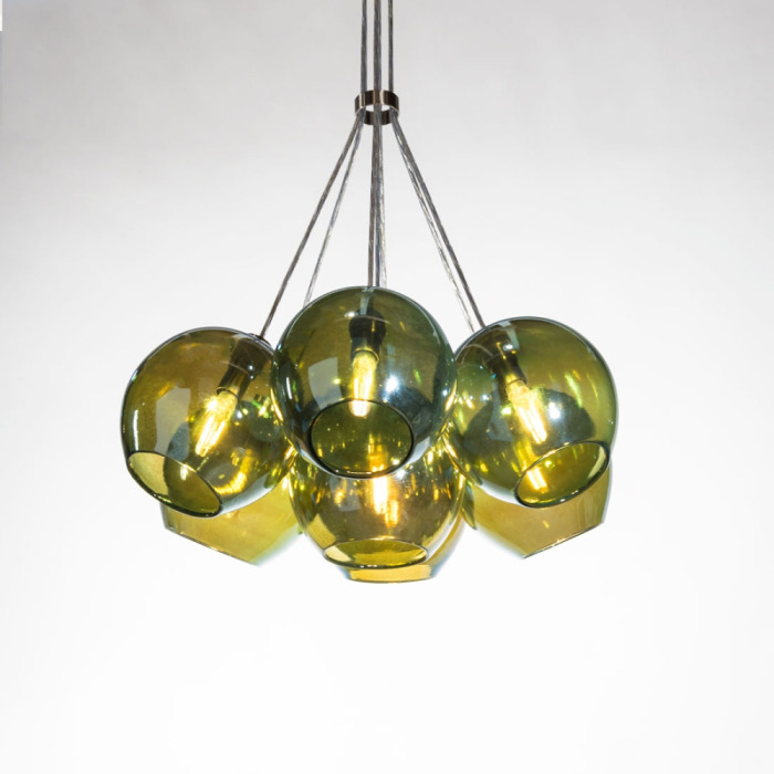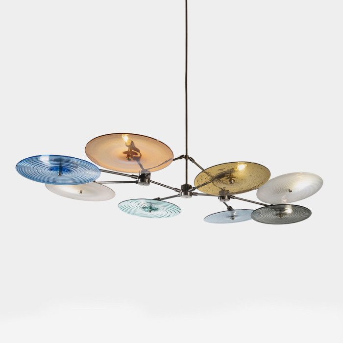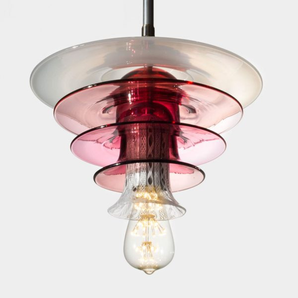 Tracy has conceived her lighting – table and floor lamps, wall sconces and ceiling pendants – as a system of interchangeable parts offering a multiplicity of choices for the proportion and shape of base components, glass color, lampshade fabric, metal finishes and lamping. Likewise, the accessories – decorative hardware, and vases – are available in a wealth of color combinations and patterns. This allows optimal room for our clients’ input: each piece can be site-specific, and, depending on the elements selected, quietly tasteful, dramatic, stately, or whimsical. We welcome your inquiries.