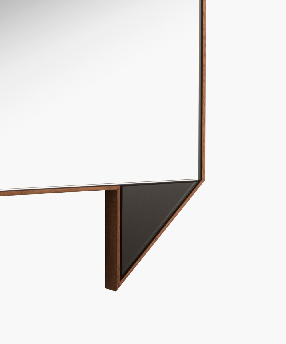 Steam bent walnut or white oak frame. Selection of mirror colours and finishes.