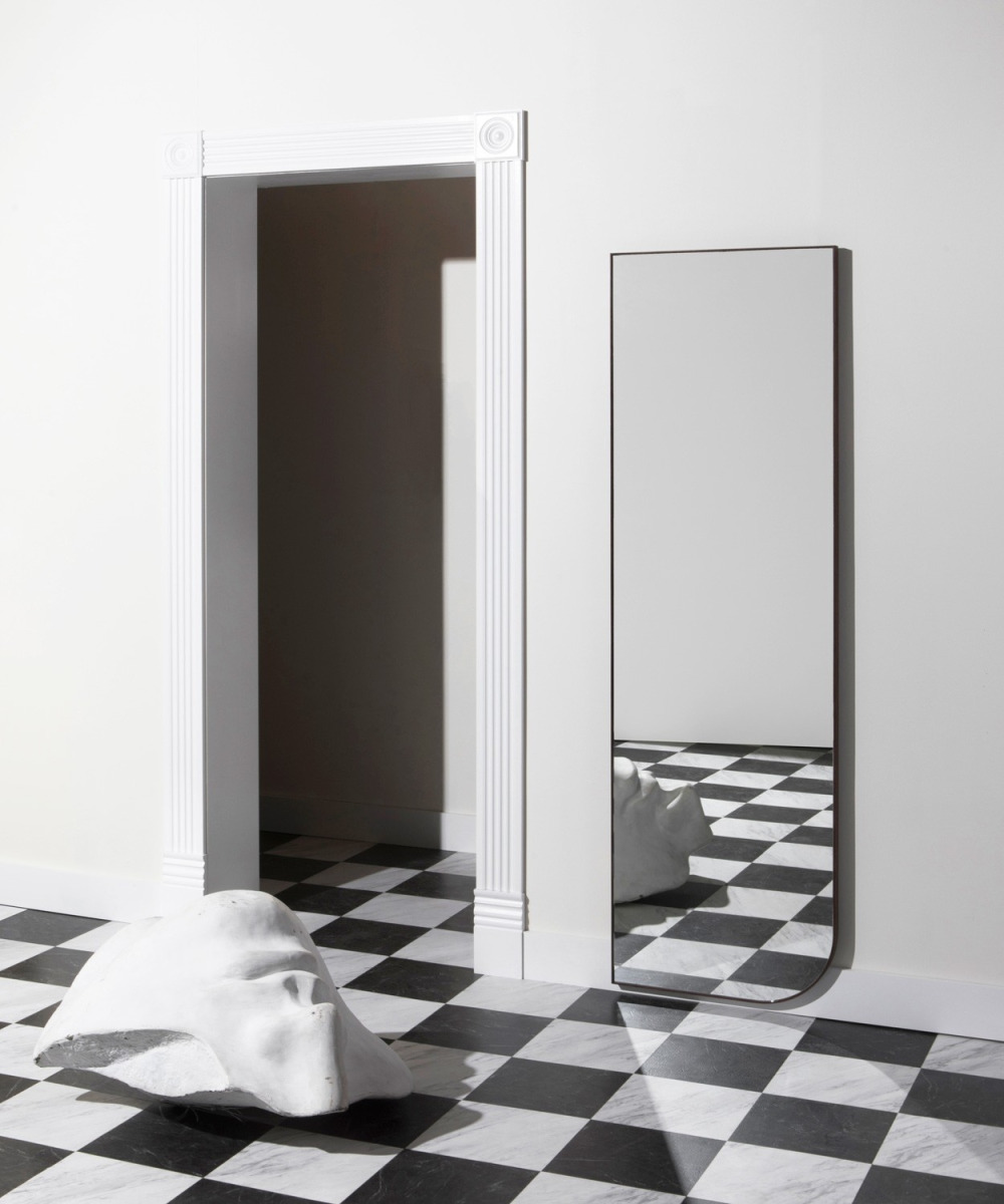 Steam bent walnut or white oak frame. Selection of mirror colours and finishes.