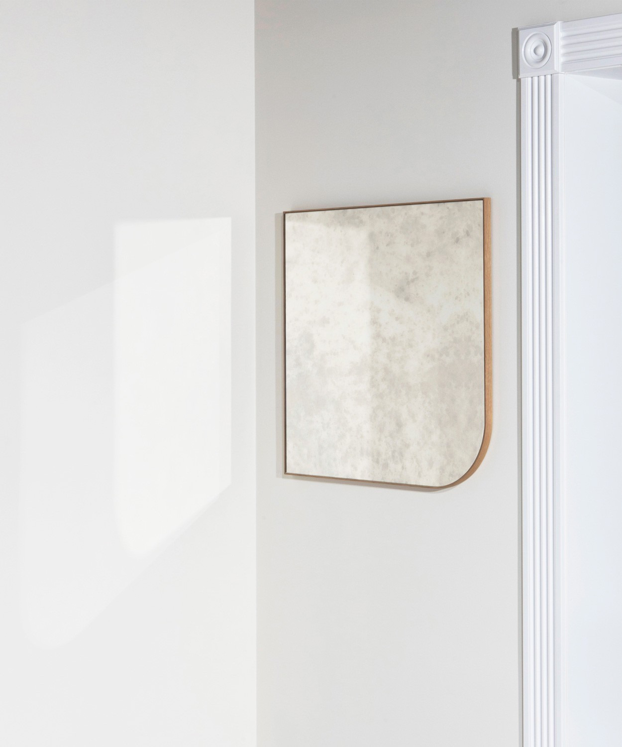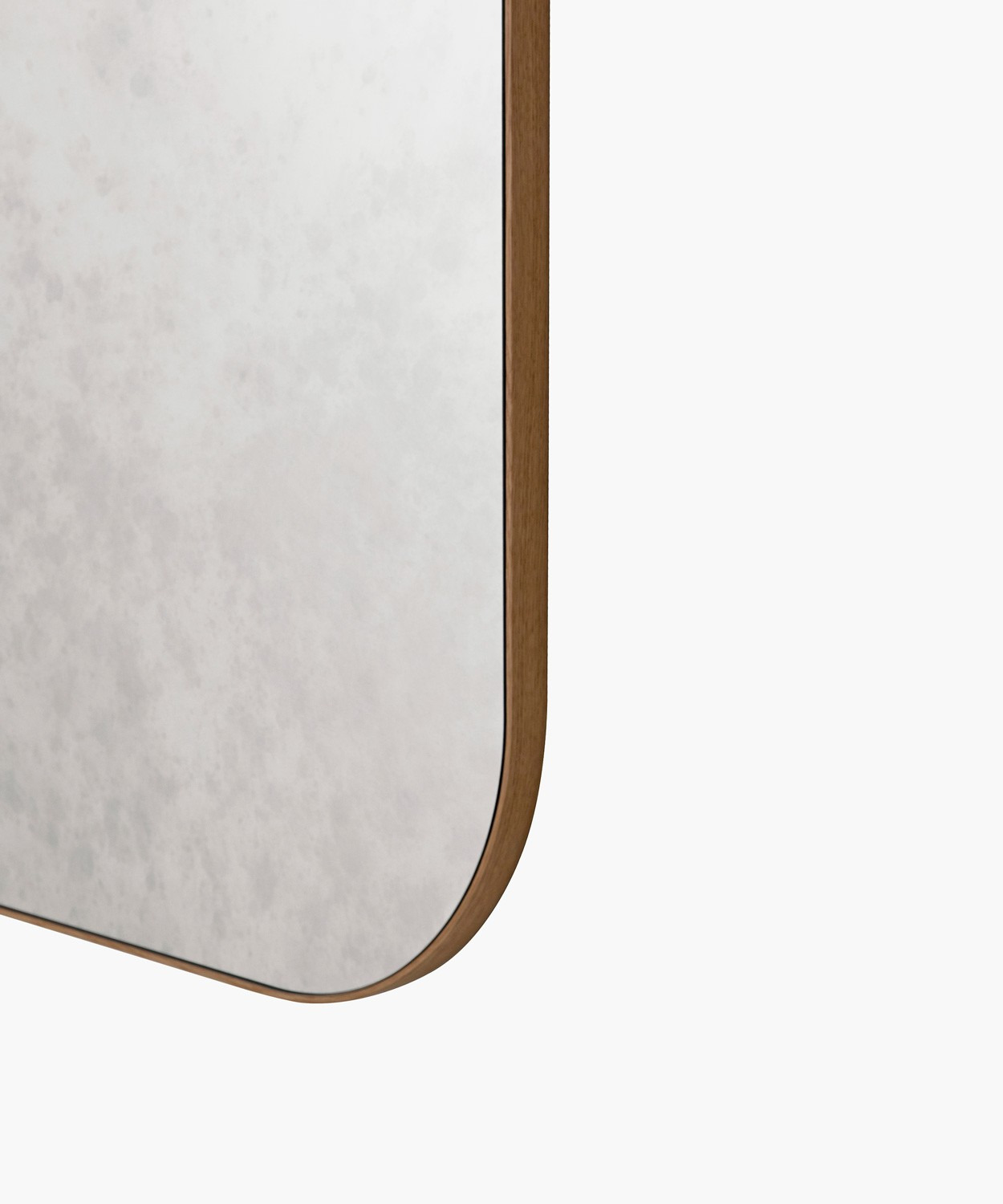 Steam bent walnut or white oak frame. Selection of mirror colours and finishes.