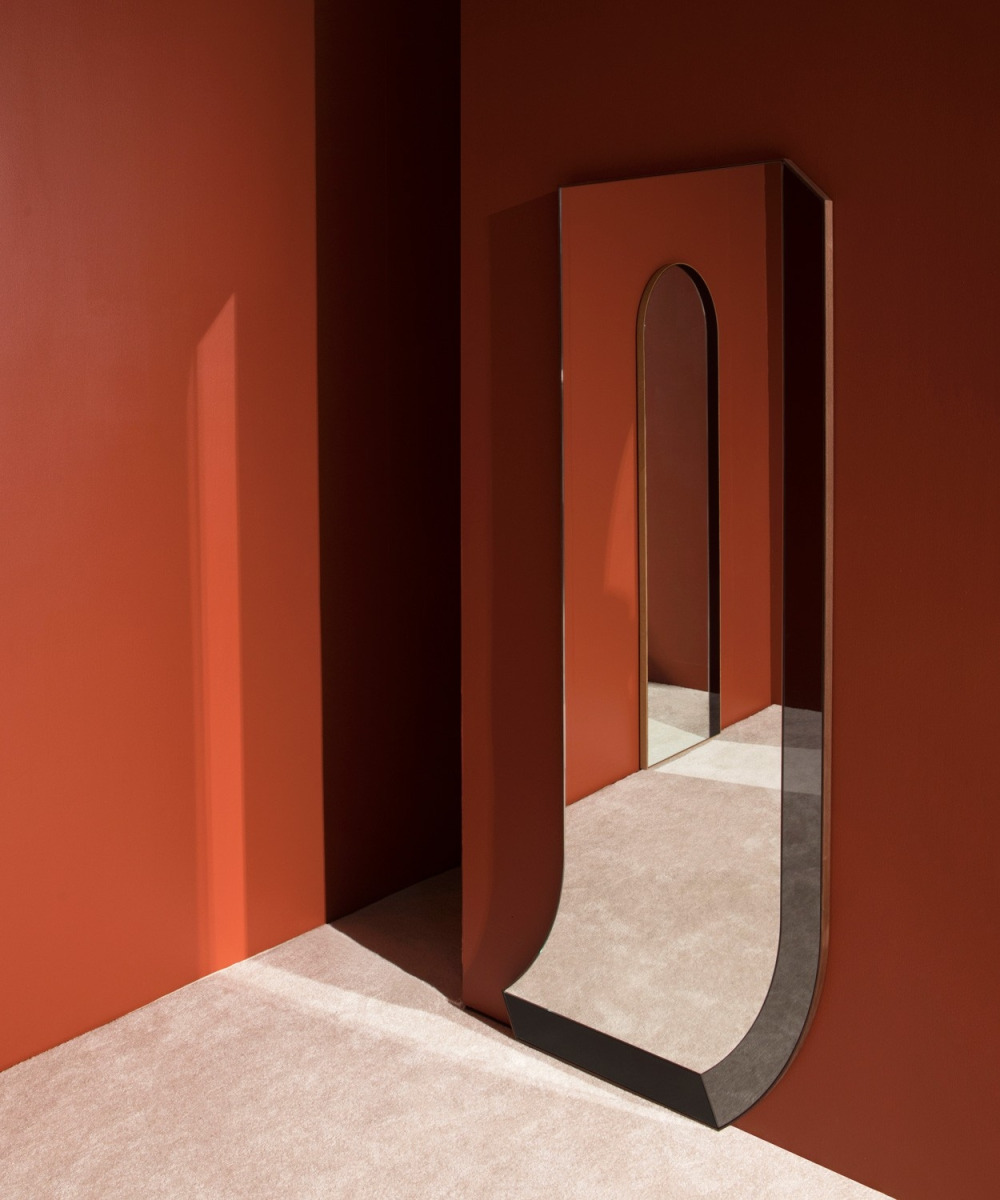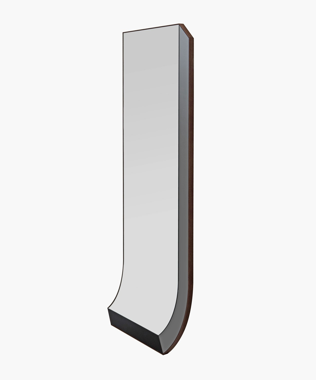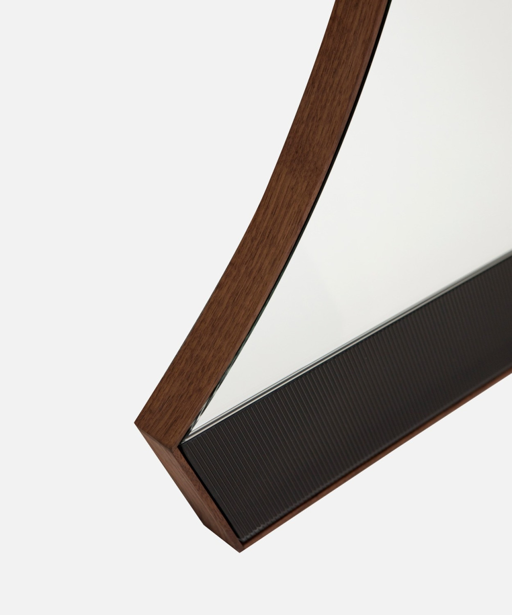 Steam bent walnut or white oak frame. Selection of mirror colours and finishes.