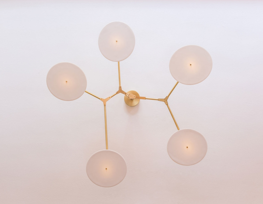 Lindsey Adelman designs and produces lighting in Manhattan. Inspired by structural forms found in nature, as well as the visual tension that results from mixing hand-blown glass with machine-made metal parts, her signature chandeliers have made her one of the most in-demand lighting designers in America.