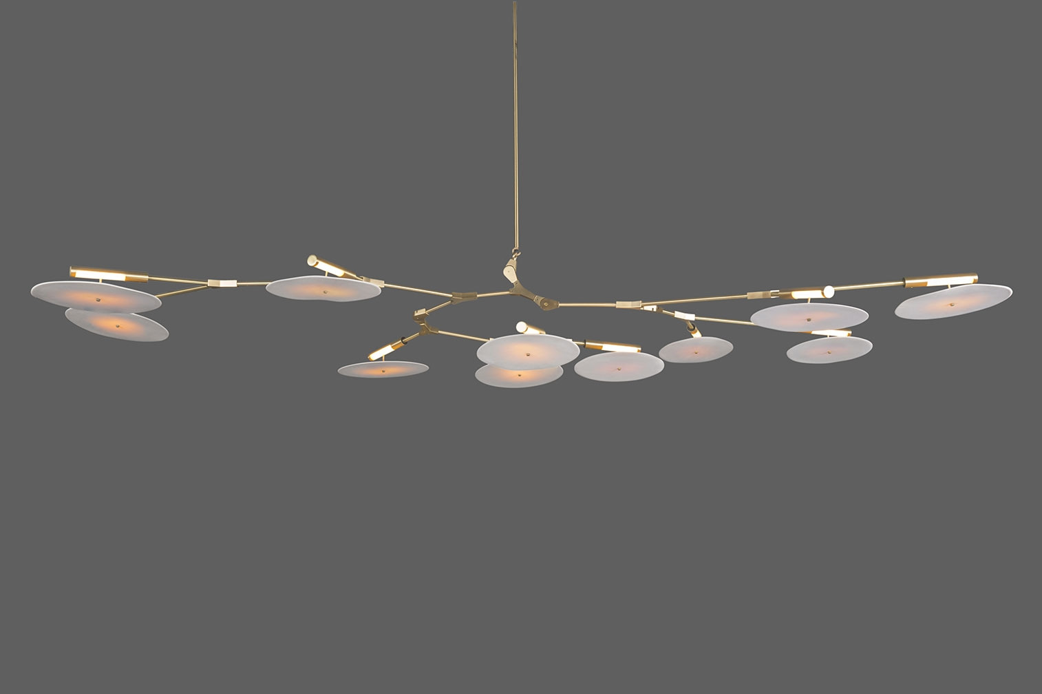 Lindsey Adelman designs and produces lighting in Manhattan. Inspired by structural forms found in nature, as well as the visual tension that results from mixing hand-blown glass with machine-made metal parts, her signature chandeliers have made her one of the most in-demand lighting designers in America.