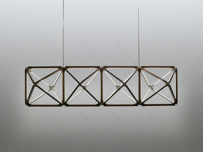 Inspired by a pile of long linear wooden cut-offs in their workshop, RUX designers challenged themselves to develop a truly sustainable lighting system. As a starting point, they only considered designs that could be manufactured locally and affordably within a five mile radius of their New York City office. They chose to use reclaimed and sustainably sourced woods as a primary building material, and sourced energy efficient LED technologies and components. The collection was designed with the least number of parts possible and with connections that make the pieces easy to separate for maintenance, recycling, or reuse.