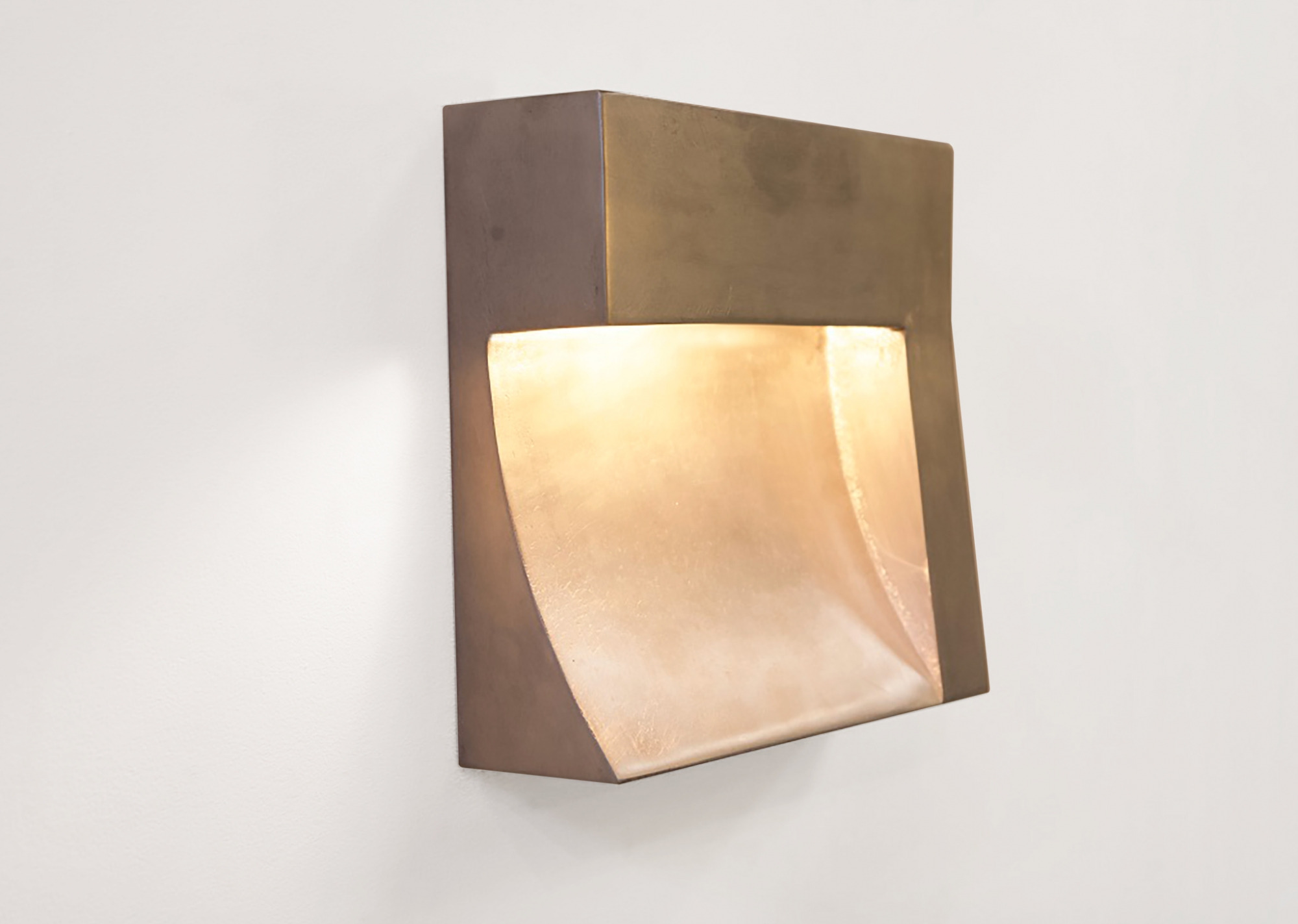 The ANGLE is a sculptural wall light in cast aluminum. A sweeping arc of light is carved into the face of the fixture bringing balance to its brutalist form.