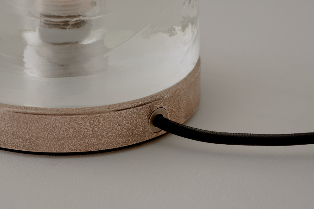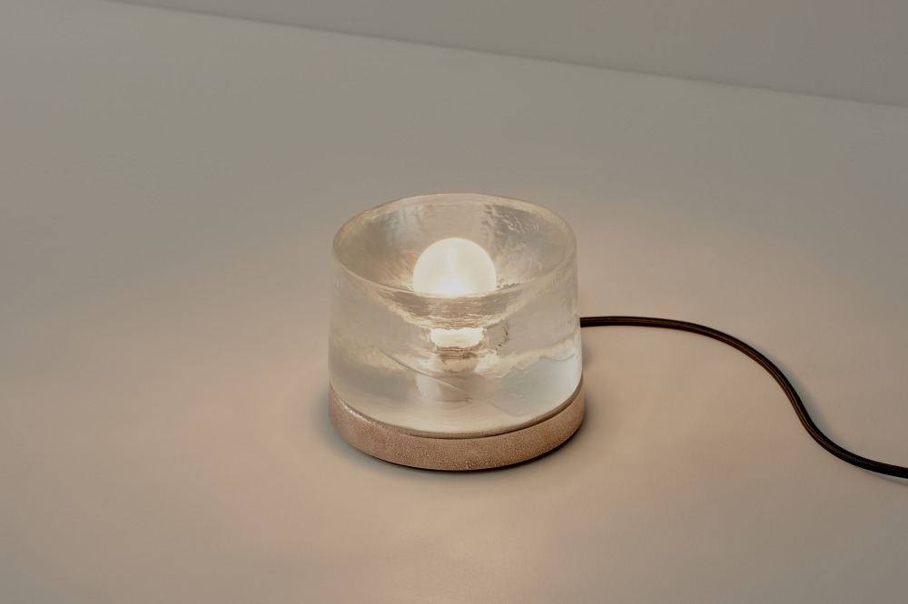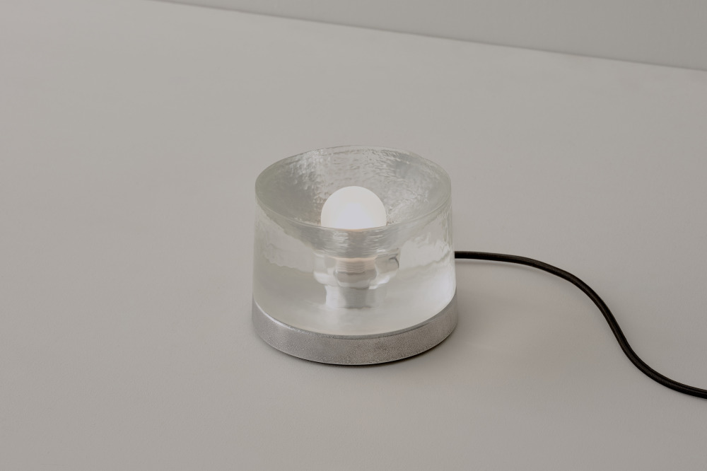 The Anton series is an exploration of cast materials, hand-worked to capture the qualities of each finish. The central lamp illuminates the face and reflects light.