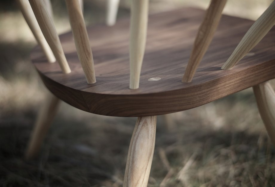 Available in solid European ash with a solid American black walnut seat finished with a Danish oil, white oil, or black oil. NOTE: Only one oil option may be chosen for the chair.