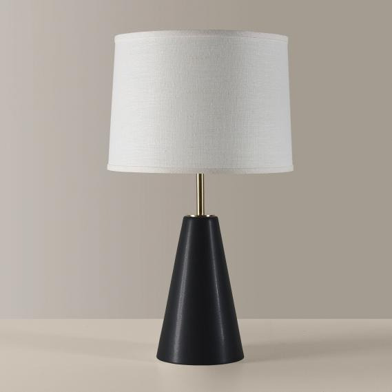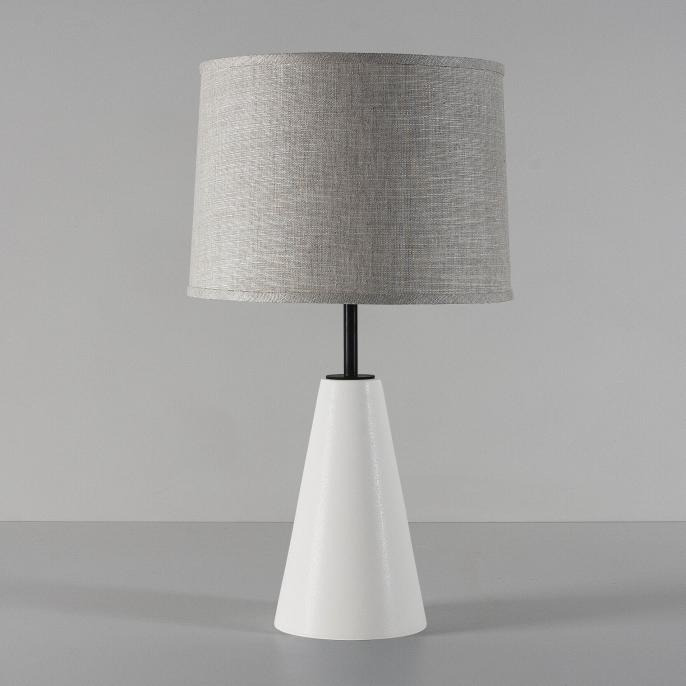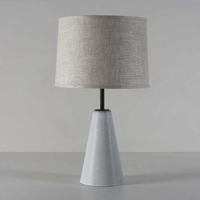 Handcrafted stoneware lamp body available in Fossil Gray, Pigeon, White Quartz, Charcoal, and Obsidian. The Gio table lamp is available with hand finished blackened brass or satin brass hardware. Lampshades are 100% natural linen in cream or natural.