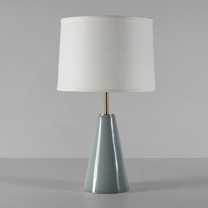 Each lamp is hand finished and glazed with multiple firings to ensure a quality product. They offer a selection of glazes, hand-turned wood necks and bases, fine quality brass hardware, handmade natural linen lampshades and cloth-covered cords. Lamp components are produced by Stone and Sawyer and have extensive custom capability including additional custom glazes, wood finishes, metal finishes and lamp shades. Custom designs for hospitality are also available.