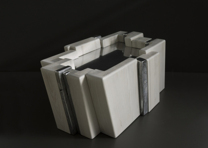 Simon Johns is a fine arts–trained designer living and working in the secluded woods of East-Bolton in southern Quebec, Canada. Illustrating a conversation between the fabricated and the elemental, Simon creates one-off and limited-edition pieces of sculptural furniture and lighting. His work is a product of observing and living with the pure and raw shapes of his surroundings. The unaltered physical traits of primary materials are harnessed to evoke the emotions one feels in their presence. Using a variety of materials as vocabulary, he plays with their capabilities in mimicry, having them reference or reflect each other in precisely crafted poetic compositions. The outcome is work that is imbued with a sense of contemplation, as if we are to evaluate our connection to our own environment.