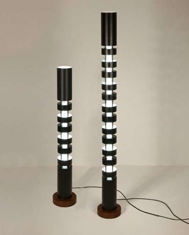 In 1953 Jacques Adnet hired him to design lighting fixtures, an art to which he devoted the rest of his life. Throughout the 1950s Mouille designed large, angular, insect-like wall mounted and standing lamps with several arms and smaller, more curved wall-sconces. Some of his best known designs from the period are his “Oeil” lamp (1953), “Flammes” (1954) and “Saturn” (1958). He worked to achieve a kinetic, sculptural aesthetic that evoked a sense of movement in space. He also claimed his lighting fixtures were “a reaction to the Italian models, which were beginning to invade the market in 1950,” and which he thought to be “too complicated.” His designs from this period were shown mainly at the Steph Simon Gallery in Paris. Towards the end of the 1950s the invention of neon tubes inspired Mouille to create a series of floor lamps that combined incandescence and fluorescence. These designs, called the “Colonnes” collection, had their debut at the 1962 Salon for interior design, and are some of his better known later works.