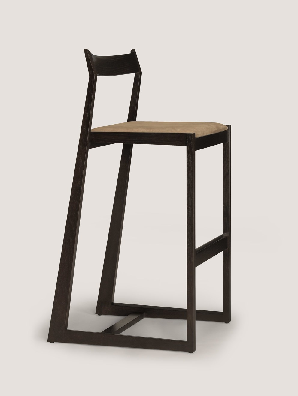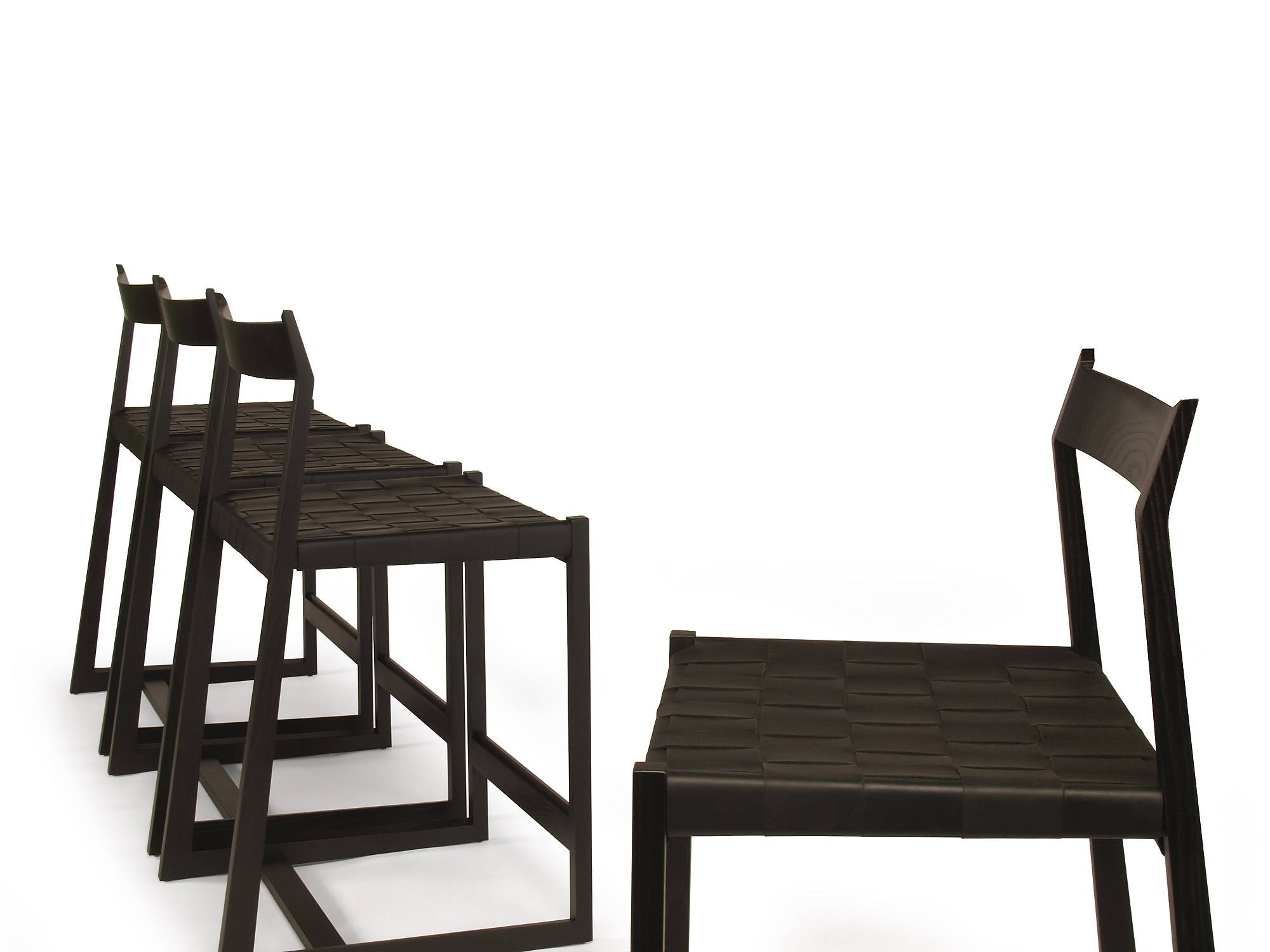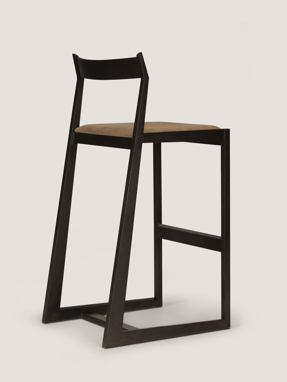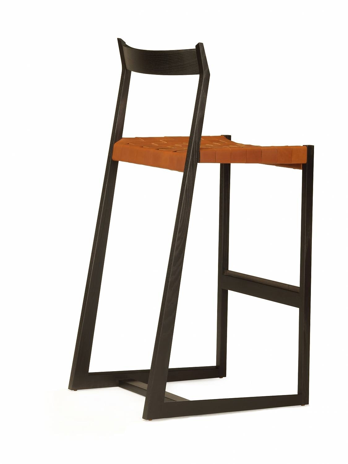 The lineground #2 stools are offered in 2 models for counter and bar height applications. They are available with or without arms, with woven leather seat or upholstered seat.